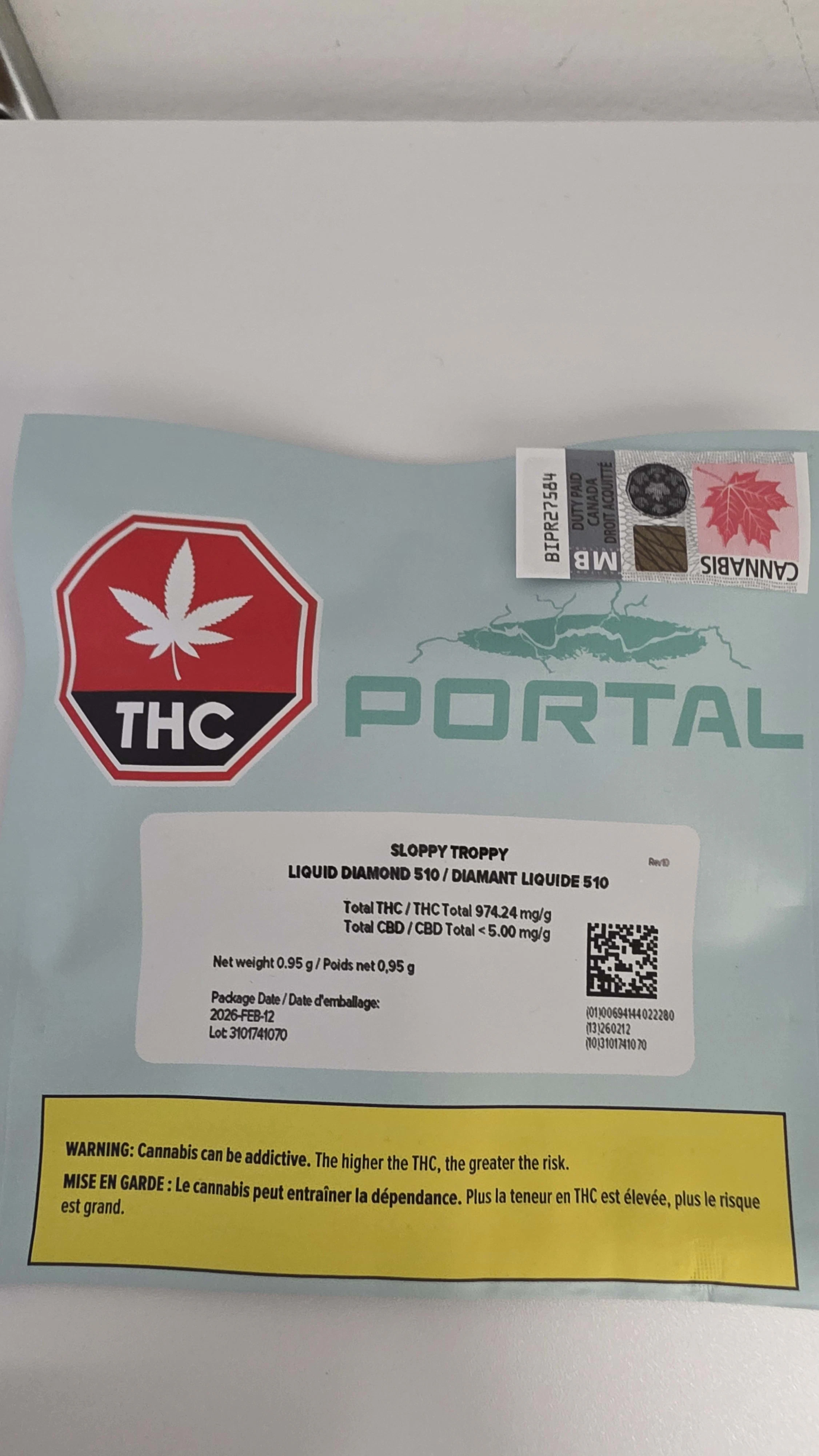 Portal Sloppy Troppy Liquid Diamond 0.95g Vape Cart
